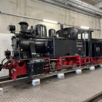 Am Montag ging es zur Mecklenburgischen Bäderbahn, kurz „Molli“ genannt. Nach einer Führung durch die Werkstatt in Bad Doberan, in der mittlerweile die gesamte mittelschwere Instandhaltung durchgeführt wird, fuhren wir nach Kühlungsborn West. Alle Fahrzeuge sind sehr gut gepflegt, sie werden alle 56 Tage komplett durchgesehen, die Loks alle 28 Tage einschließlich der Kesselwäsche. Die Außenwäsche erfolgt wöchentlich. Im Museum stärkten wir uns zum Ende des offiziellen Programms mit einem Imbiss.