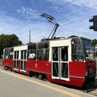 Der kommende Tag in Stettin stand zur freien Verfügung, bevor es dann nachmittags nach Landsberg an der Warthe/ Gorzów Wielkopolski weitergeht. So kam es, dass sich die Straßenbahnfreunde an den schönsten Stellen im Netz immer wieder begegneten. Ob modernisierte Konstals, Tatra T6 oder KT4D oder die modernen Pesa Swings, alle Typen wollten „befahren“ und im Bild dokumentiert werden. Wegen einer größeren Baustelle verkehrten aus SL 4 Zweirichtungsfahrzeuge mit Niederflurmittelteil.