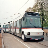 Der von 1987 bis Ende 1990 laufende Probebetrieb sollte der Entwicklung eines Zwitters aus Bus und Straßenbahn dienen, der mit um 40 Prozent (erwarteter) niedrigerer Kosten im Vergleich zu letzterer für mittelgroße Städte interessant wäre. Es wurden zwei Fahrzeuge gebaut, ein 18,30 Meter langer Gelenkbus und ein 25,30 Meter langer Doppelgelenkbus.